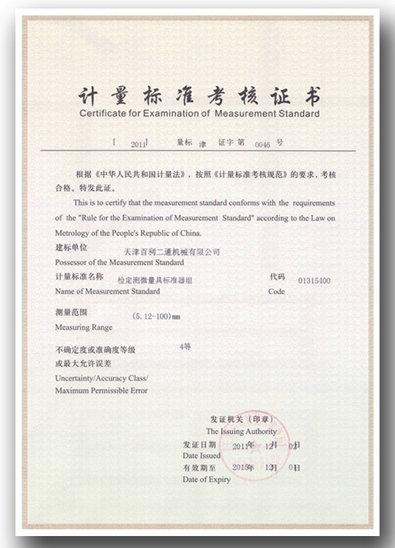 計量標準考核證書