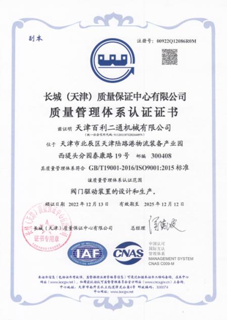 質(zhì)量管理體系認(rèn)證證書(shū)