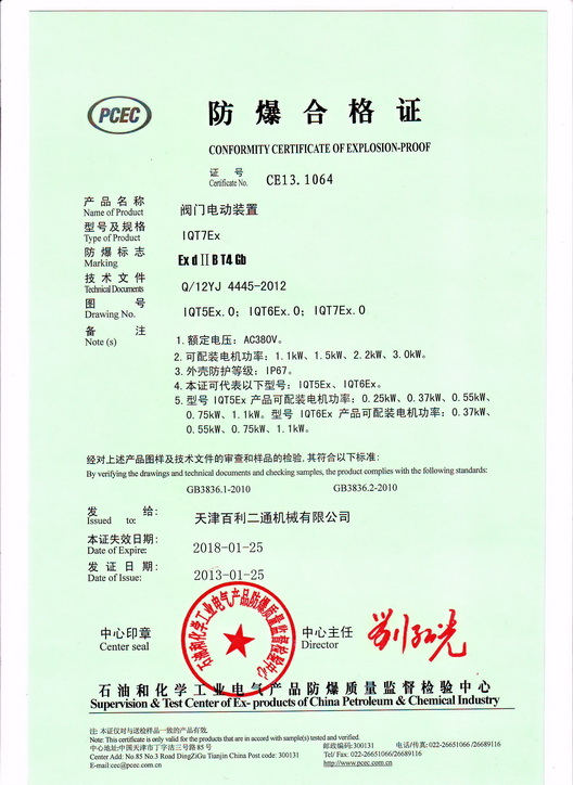 IQT5-7Ex Conformity Certification of Explosion-proof