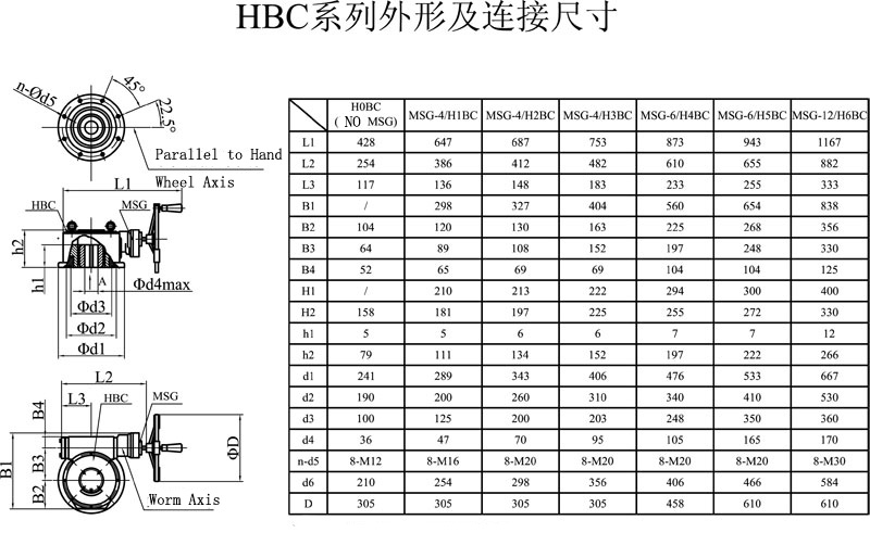HBC series worm wheel reduction mechanism is suitable for 90 turn valve during disc operation and similar mechanism such as ball valve,butterfly valve ,plug valve,its main function is that it can be combined with multi-turn electric actuator to become part-turn electric actuator,and also can be used as manual actuator.