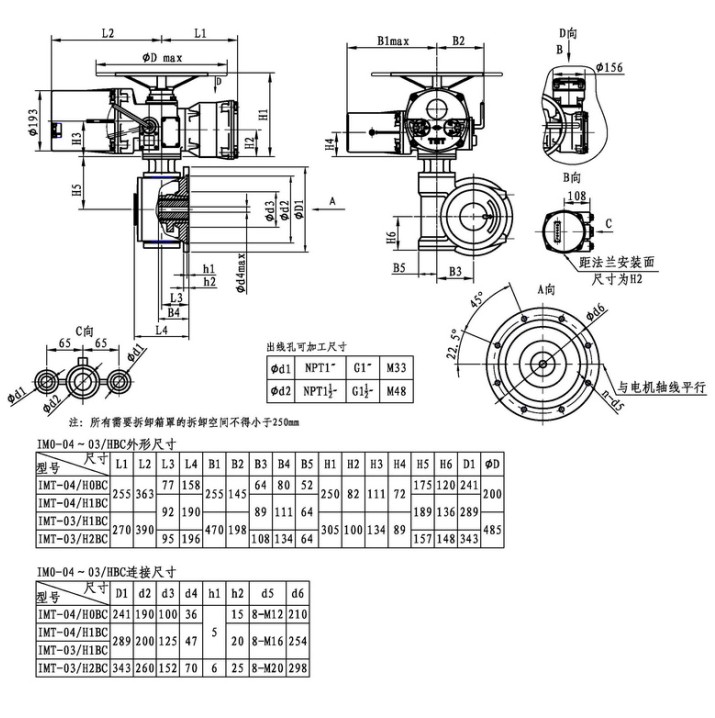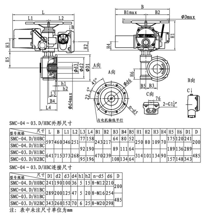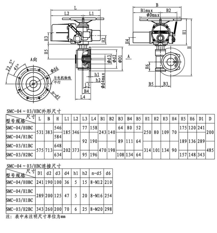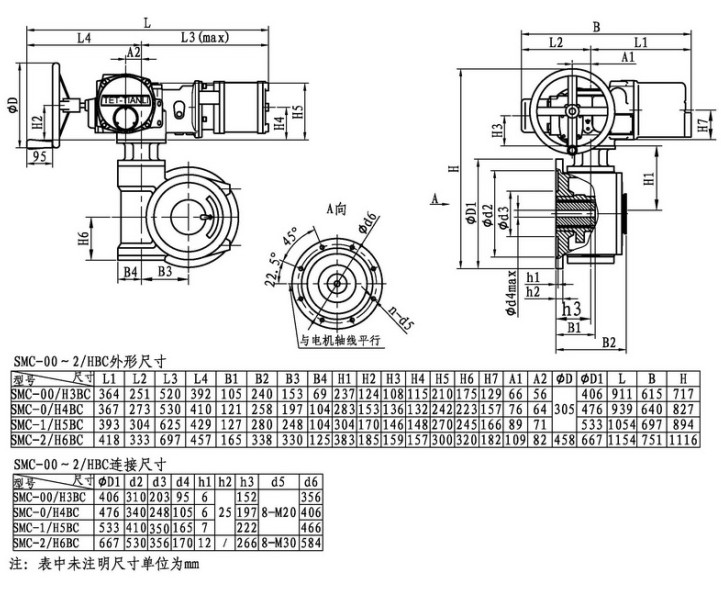 SMC/HBC系列電動裝置是SMC系列多回轉電動裝置與HBC蝸輪減速器的組合型式,它適合球閥、蝶閥等部分回轉閥門的驅動控制。SMC/HBC電動裝置具有以下特點:結構設計堅固可靠,產品規格齊全,驅動轉矩范圍大且動力輸出穩定, 具有良好的自鎖性能。 HBC輸出軸結構獨特,裝有與閥桿連接的漸開線花鍵接頭,產品的安裝調試方便。
