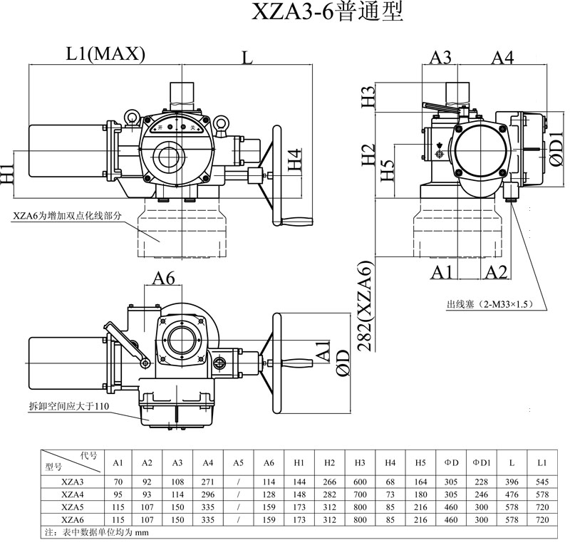 XZA2普通型產品外形尺寸