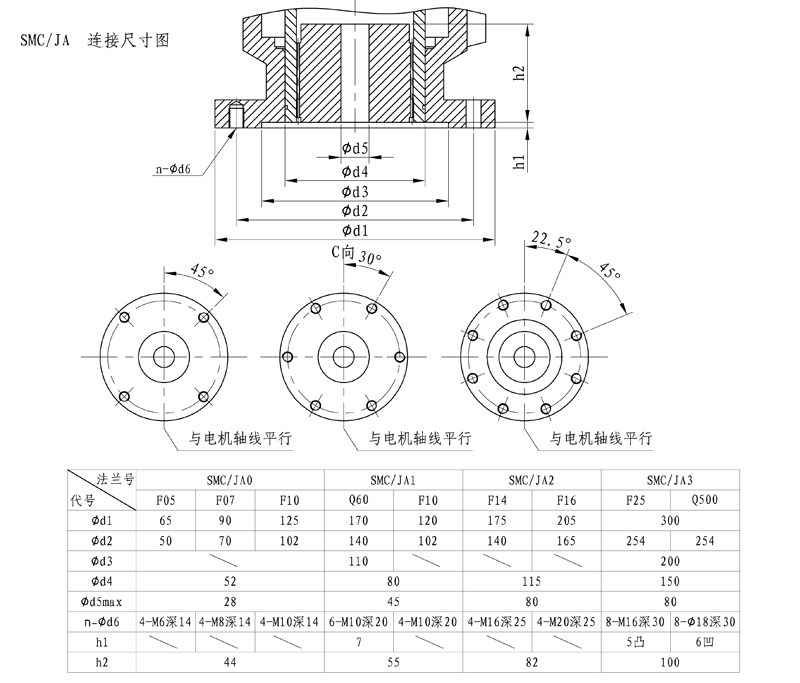 SMC/JA系列閥門電動裝置是部分回轉型閥門電動裝置,適用于球閥、蝶閥等類型閥門以及電動風門。其結構形式為組合式,由SMC多回轉電動裝置與JA部分回轉減速裝置相組合而成。該系列產品所適用的環境條件、溫度、濕度、海拔、防護等級均能達到SMC相應規格產品的水平。